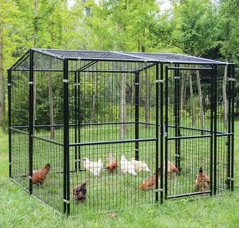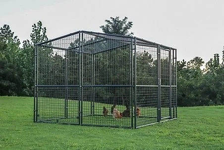 One pre-built option that can work for both indoor or outdoor housing with some modifications is a chicken pen with fence panels and an enclosed roof. We have a couple of these ourselves. TSC and Rural King both have options for this type of enclosure.